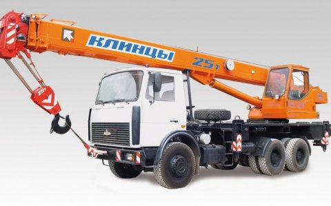 Кран стреловой автомобильный КС-55713-6К-2 "Клинцы" грузоподъемностью 25 тн смонтирован на шасси автомобиля МАЗ-6303А3. Предназначен для погрузочно-разгрузочных и строительно-монтажных работ на рассредоточенных объектах. Шасси обладает отличной маневренностью и легкостью управления, что позволяет использовать кран на объектах с различными типами подъездных путей, а малые габариты делают его пригодным для эксплуатации в стесненных условиях современных городов.