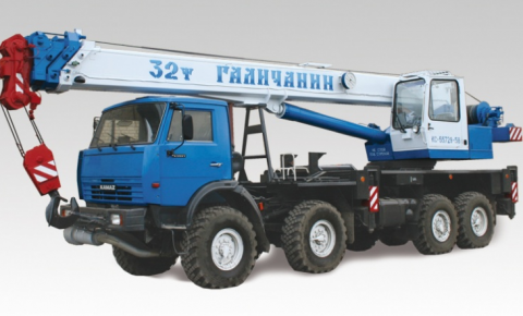 Кран КС-55729-5В грузоподъемностью 32 тонны смонтирован на четырехосном шасси автомобиля КамАЗ-63501 с колесной формулой 8x8. Мощный двигатель шасси, односкатные широкопрофильные шины, система подкачки шин, позволяющая на ходу менять в них давление в зависимости от дорожного покрытия, наличие у шасси межосевых и межколесных блокировок делает данный кран незаменимым при использовании в труднодоступных местах с плохими дорожными условиями, в том числе на строительстве нефте- и газопроводов, разработках месторождений.