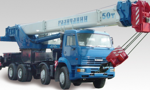 Кран КС-65713-1 грузоподъемностью 50 тонн смонтирован на четырехосном шасси автомобиля КамАЗ-65201 c колесной формулой 8 х 4 х 4. Автокран предназначен для выполнения погрузочно - разгрузочных и строительно-монтажных работ на рассредоточенных объектах и может использоваться как в современных городах, так и в условиях удаленности от населенных пунктов.